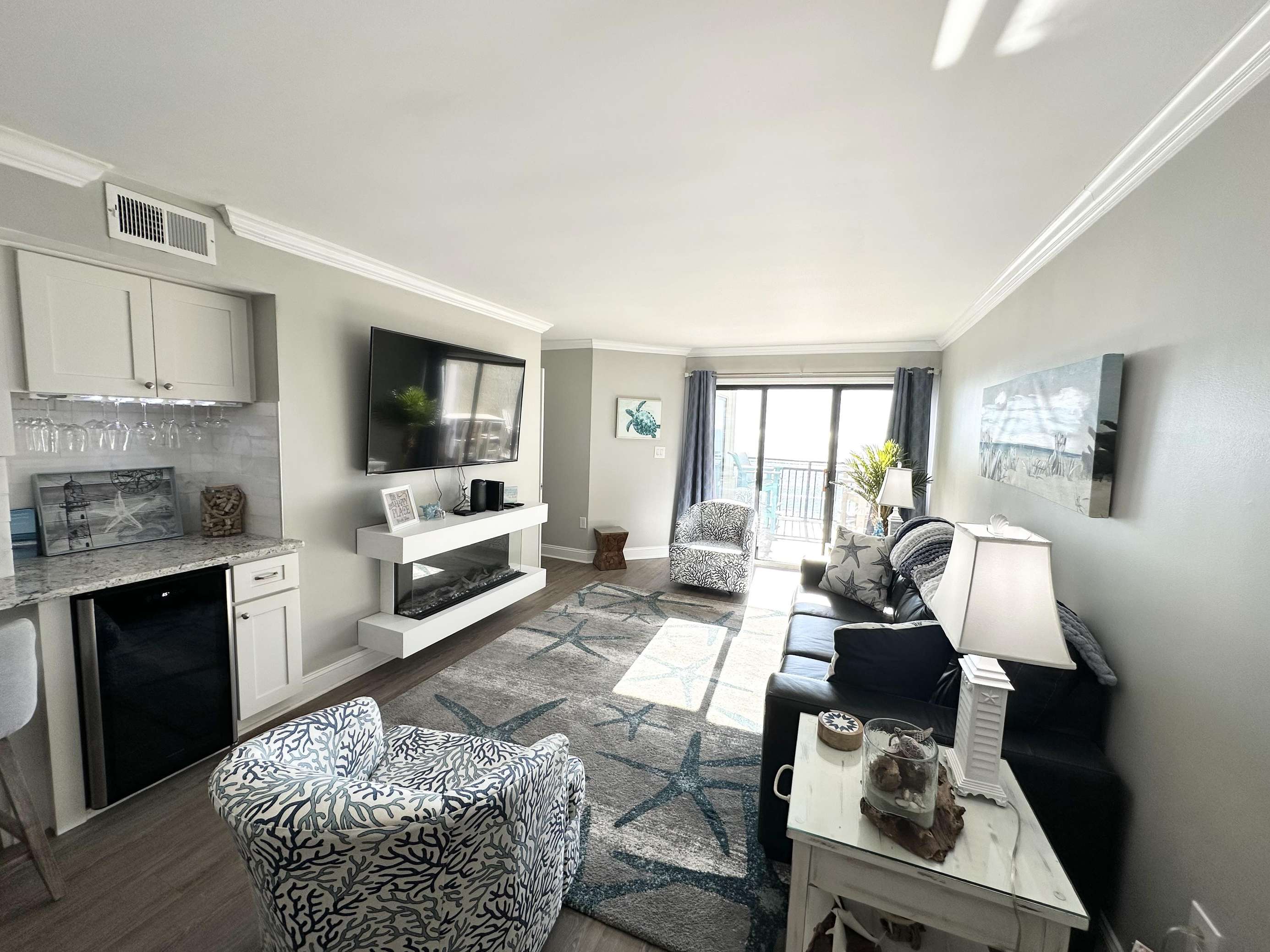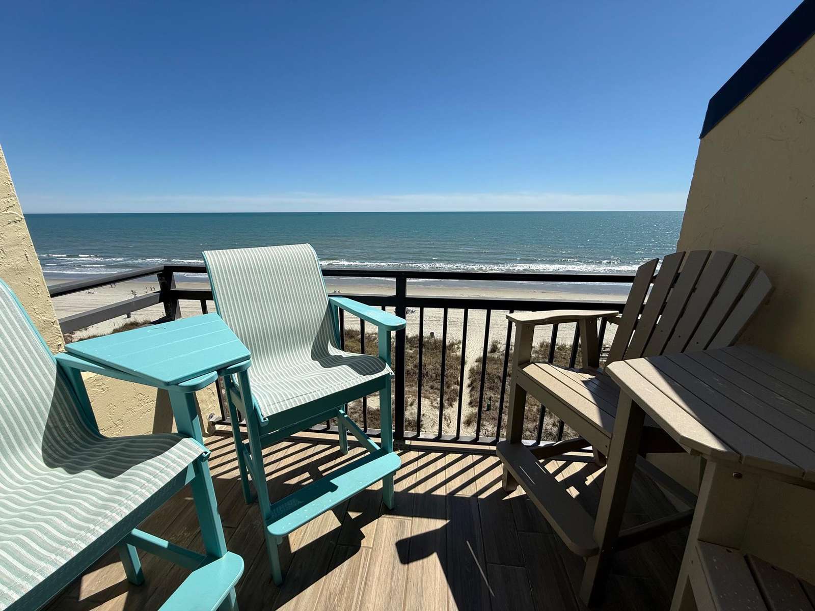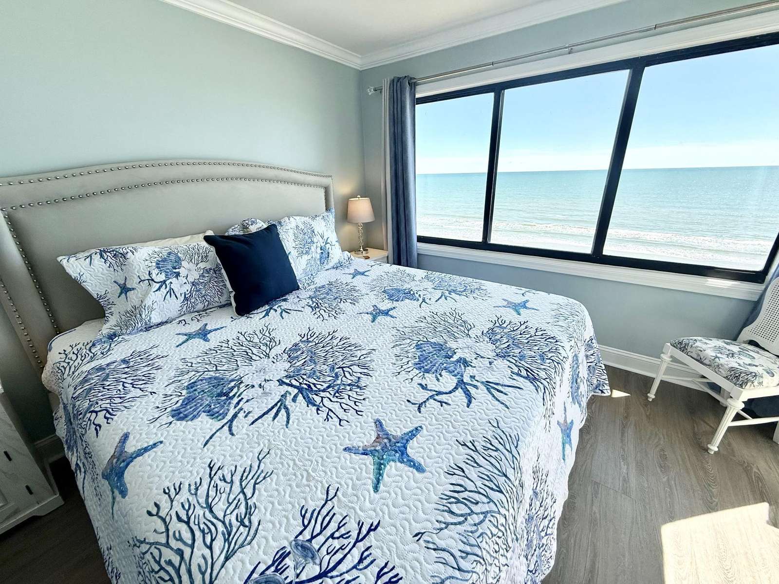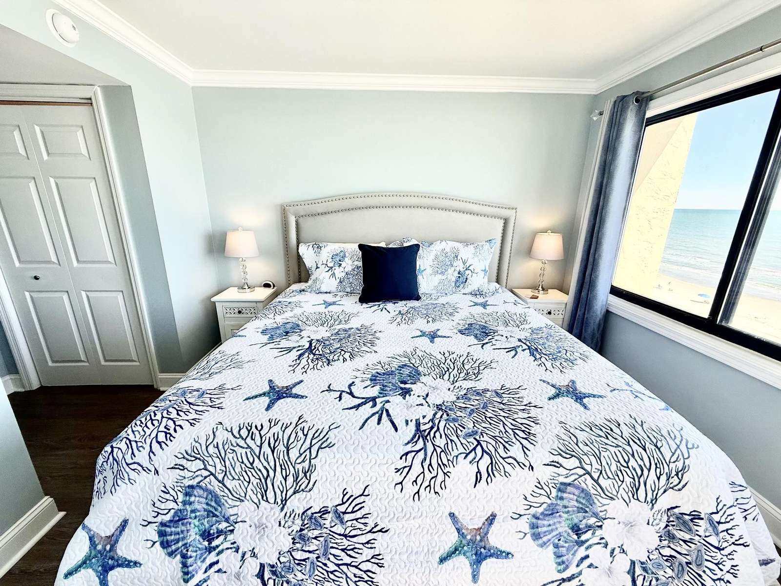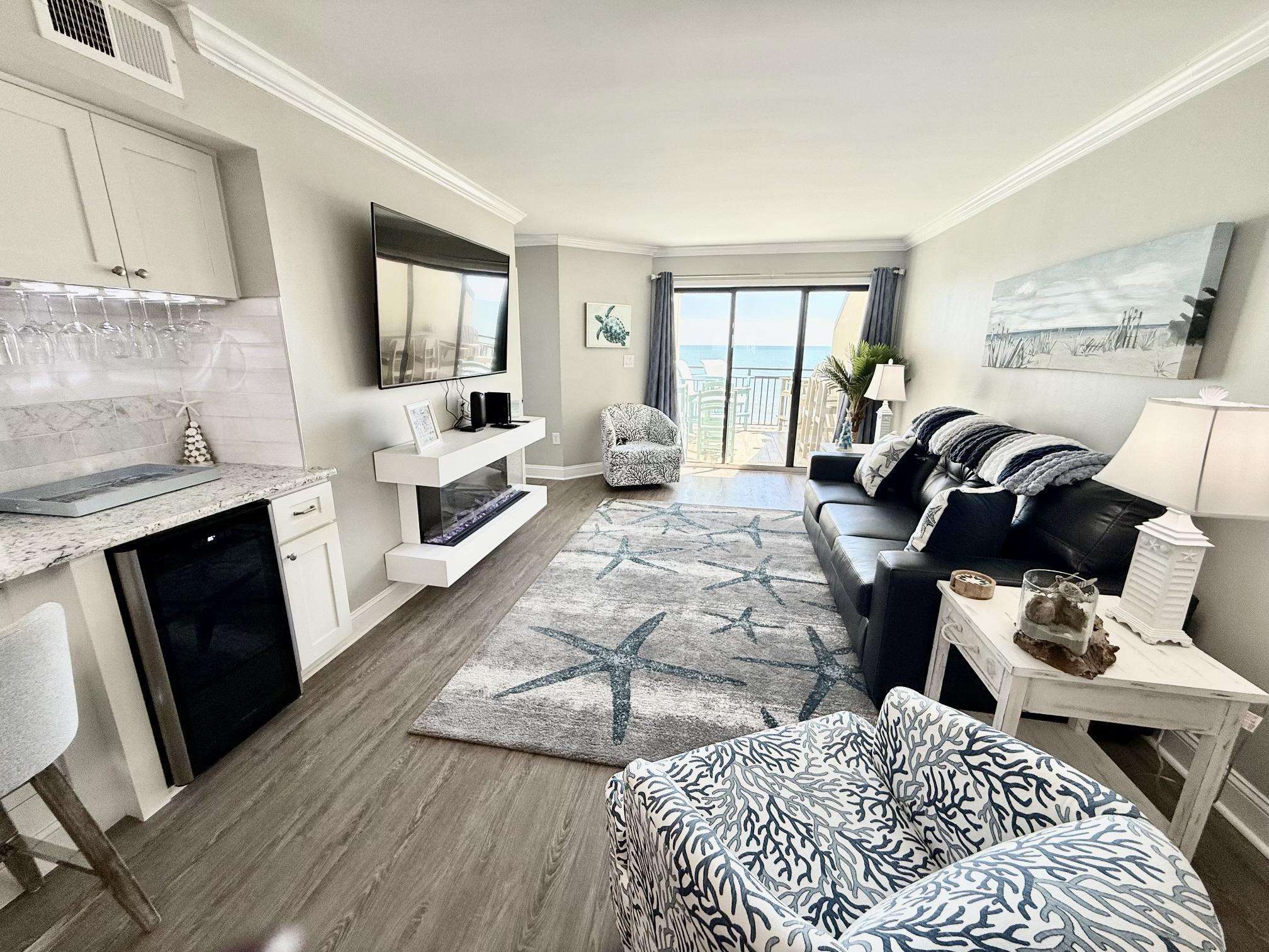 Beautifully decorated, 3br/2ba condo. Oceanfront master with direct oceanfront views. All new everything, large flat screen. Private bath with granite tops, new cabinetry, double sinks and walk in, tiled shower. All new living room furniture, plus large flat screen and remote controlled fireplace. Dry bar with refrigerator. Gourmet kitchen, all new cabinetry, granite tops, custom lighting, Keurig and Auto drip coffee makers, stainless appliances and more. This unit sleeps 8 with an additional 2 bedrooms and additional full bath plus a washer/dryer Spacious living areas, plenty of balcony furniture what else do you need?