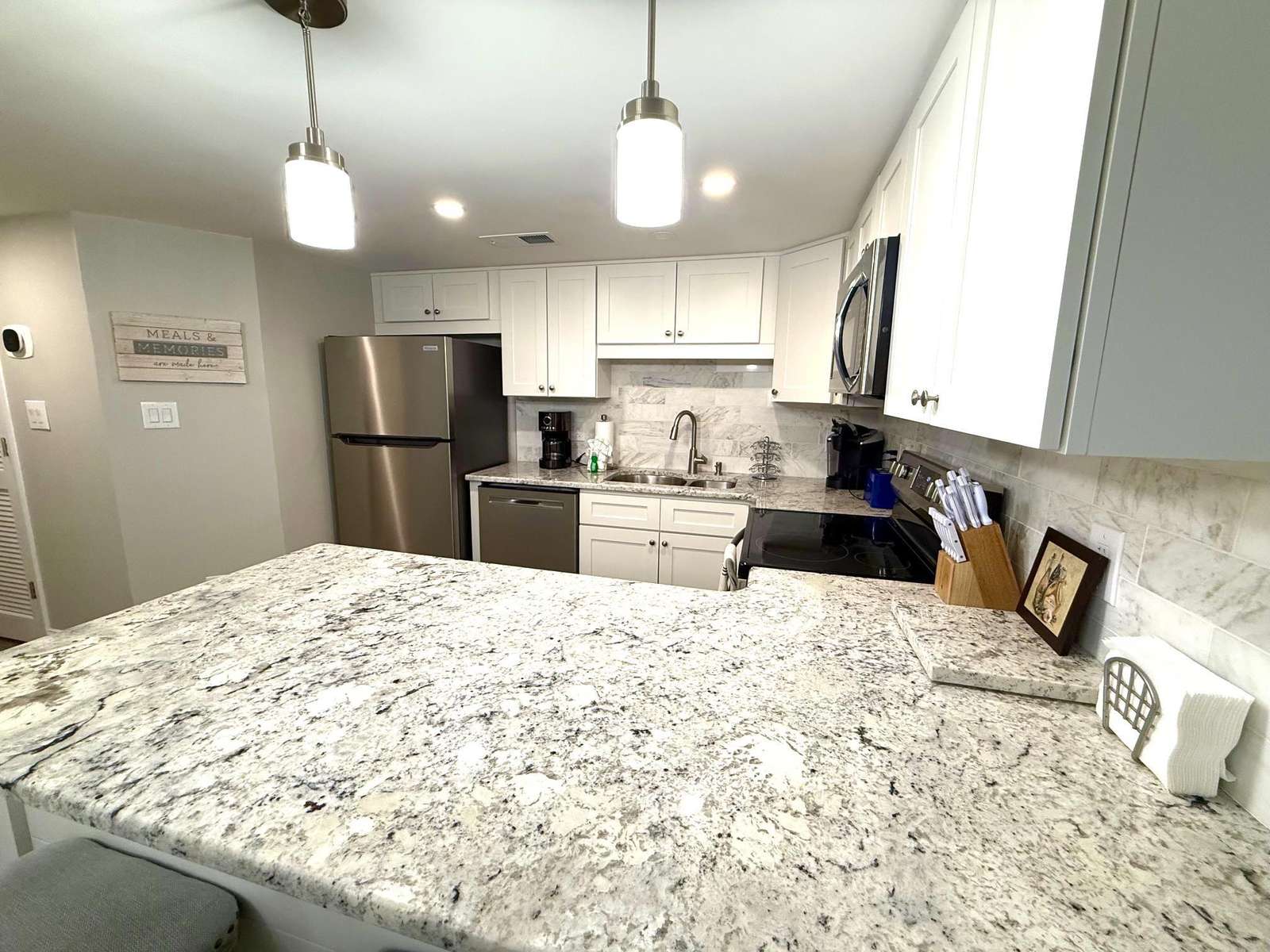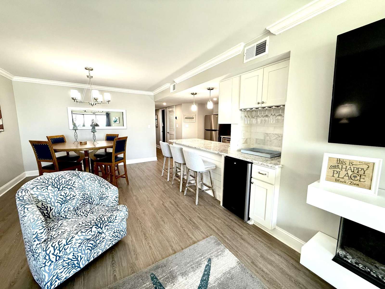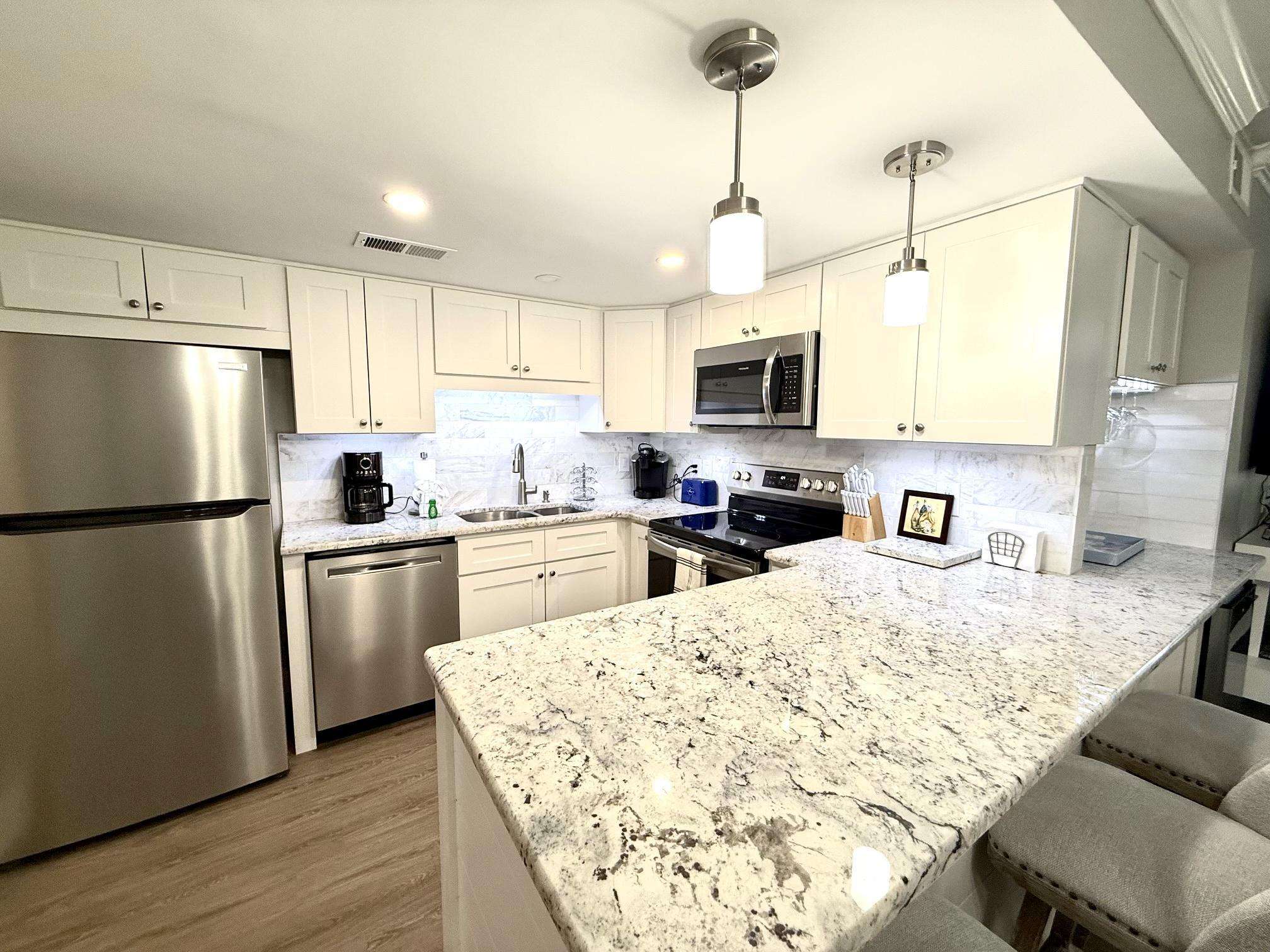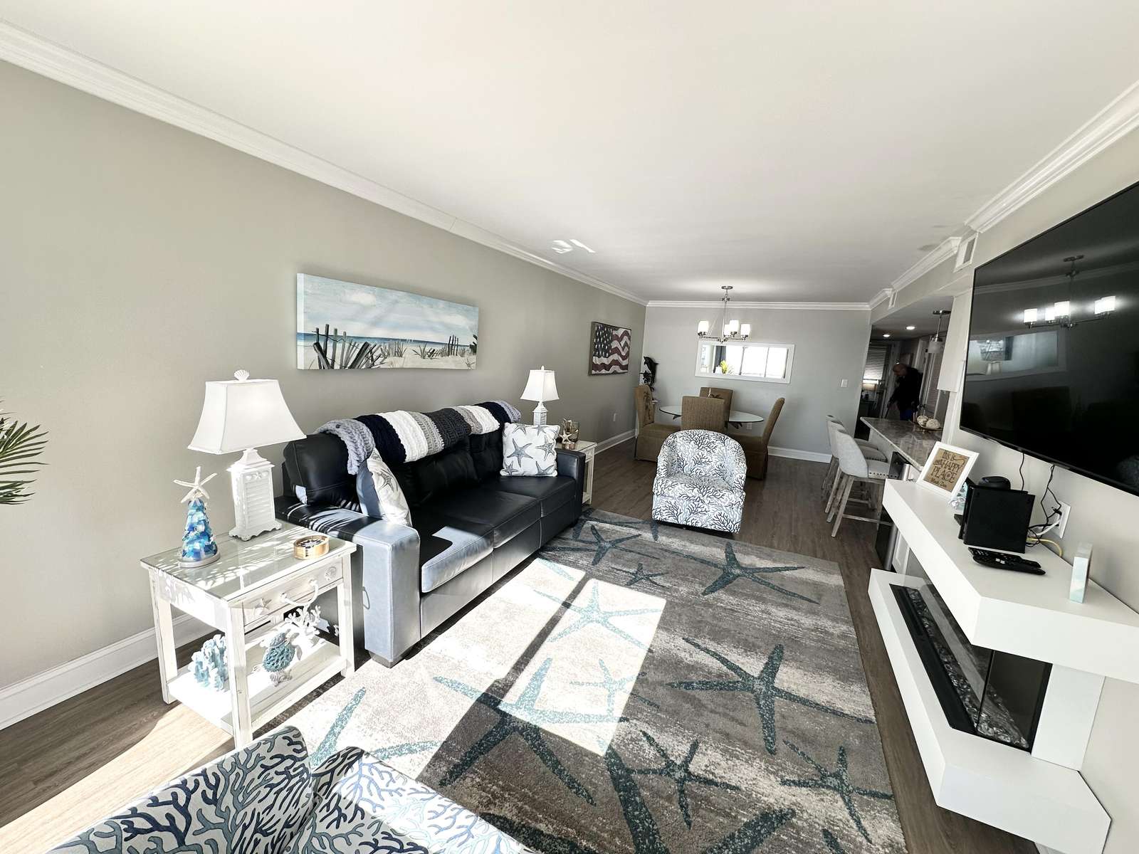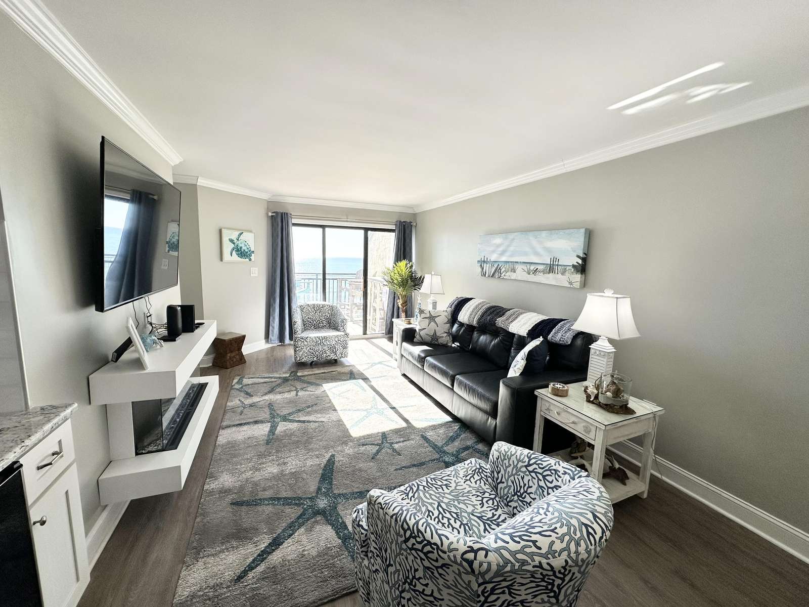 Beautifully decorated, 3br/2ba condo. Oceanfront master with direct oceanfront views. All new everything, large flat screen. Private bath with granite tops, new cabinetry, double sinks and walk in, tiled shower. All new living room furniture, plus large flat screen and remote controlled fireplace. Dry bar with refrigerator. Gourmet kitchen, all new cabinetry, granite tops, custom lighting, Keurig and Auto drip coffee makers, stainless appliances and more. This unit sleeps 8 with an additional 2 bedrooms and additional full bath plus a washer/dryer Spacious living areas, plenty of balcony furniture what else do you need?