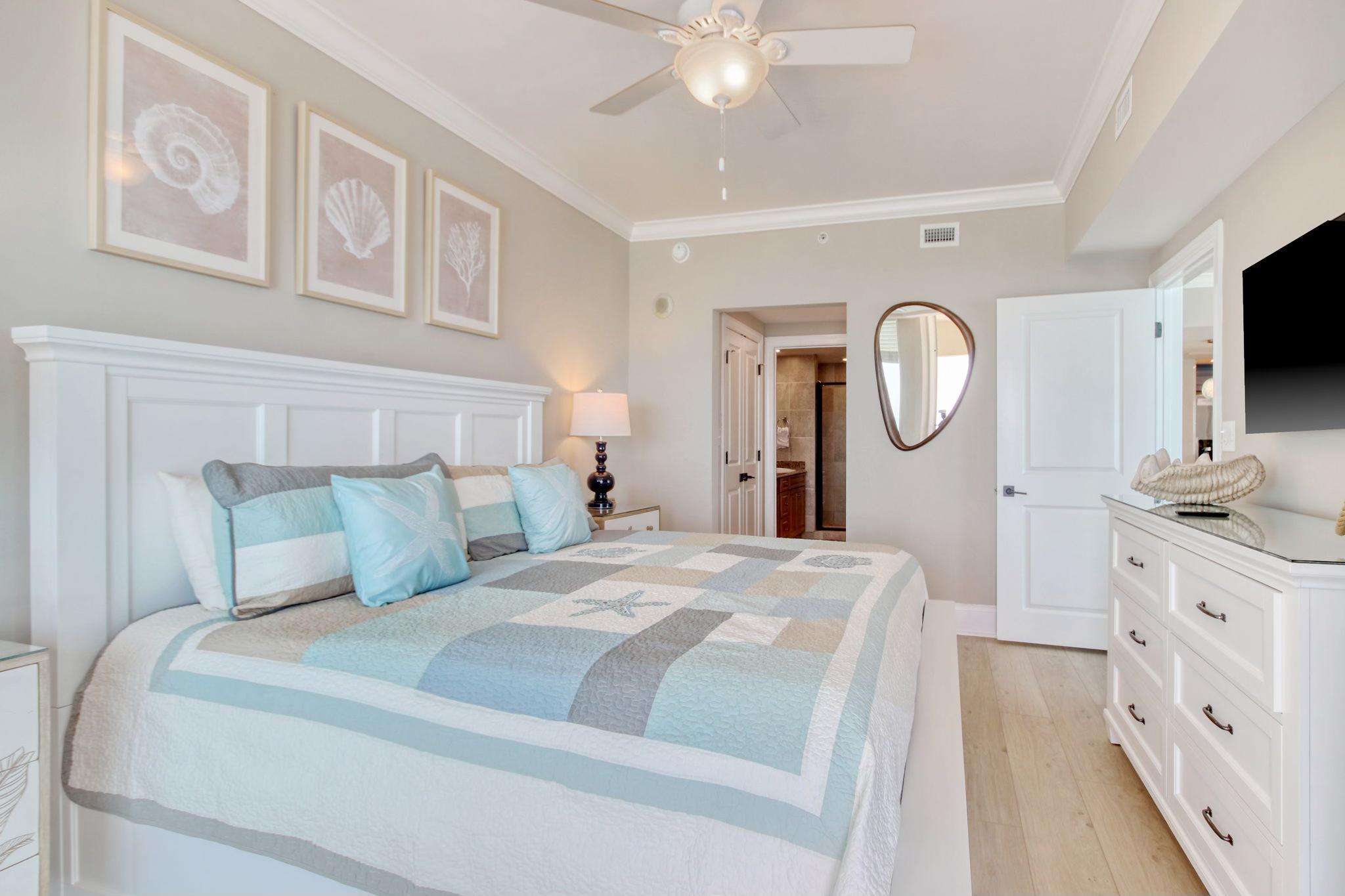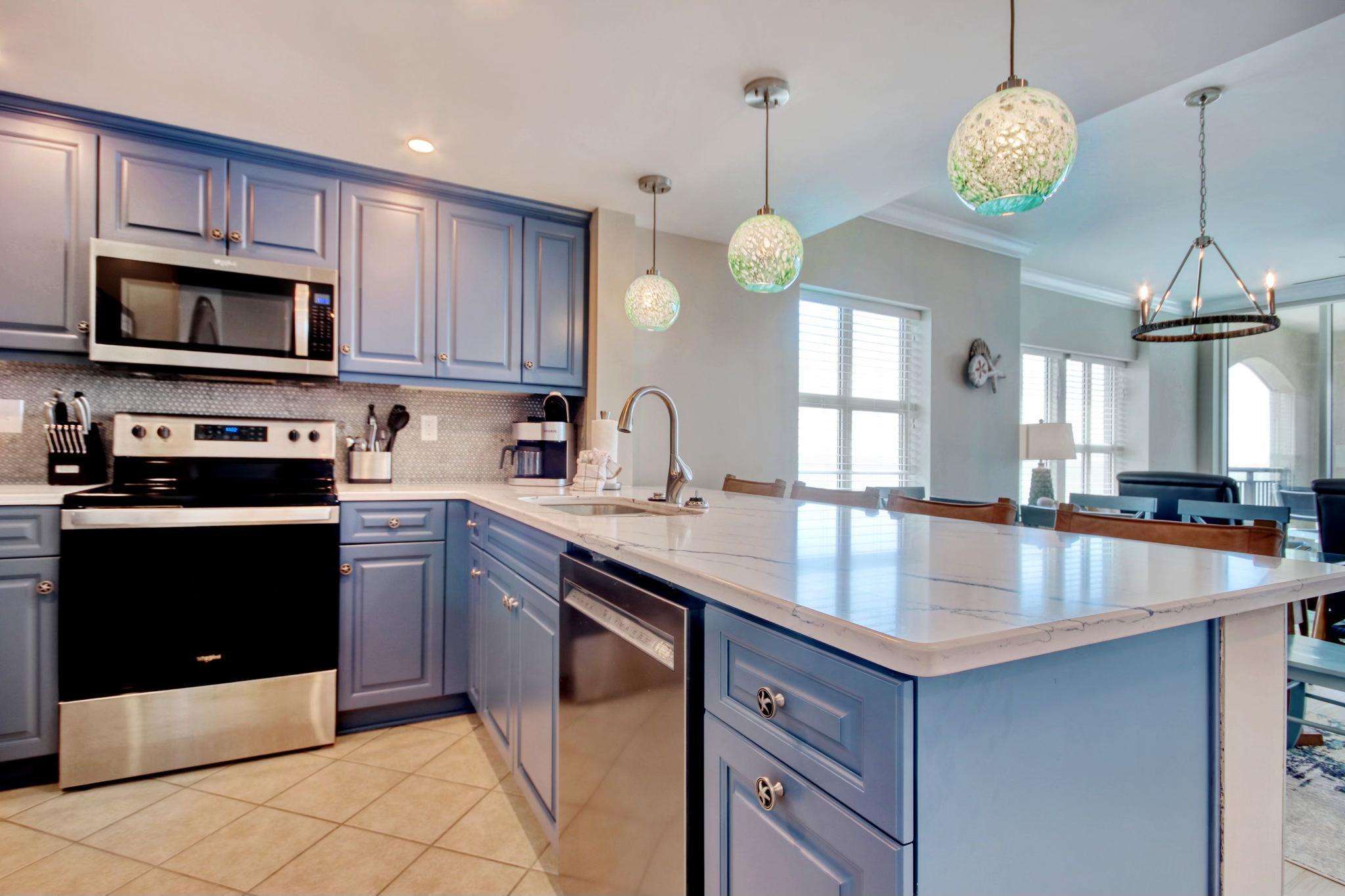 This luxurious vacation condominium is the only available penthouse corner in the building. This gorgeous unit features 3 bedrooms, 3 full baths, with an elegant master suite with direct ocean front views. The master bath features double sinks, granite counter tops, a walk-in ceramic tiled shower, whirlpool tub, linen closet, crown moldings and more. This luxury unit has a fully equipped kitchen with granite breakfast bar and seating, stainless steel appliances (all new), full size stacked washer/dryer. Separate beverage center, wet bar, icemaker and 9' ceilings unique to the penthouse floors. Relax in the comfortable living and dining areas featuring oceanfront views, flat screen TV (in each room), cable and high speed wireless. Guest bedroom (1) features a king bed with bath access. Guest bedroom (2) features two queen beds with private bath and stall shower. This beautiful end unit has windows in both guest bedrooms, dining area and living room. The building amenities include heated and cooled enclosed hallways, four high speed elevators, a fifth floor state-of-the-art fitness center, indoor and outdoor pool areas, two hot tubs, lazy river, private beach access, seasonal Tiki bar and four enclosed levels of parking. The Mar Vista Grande is located one traffic light from Main St. and the Highway 31 connector. Only minutes from restaurant row, outlet shopping, world renown golf, water sports, and all the Myrtle Beach attractions including Barefoot Landing,
