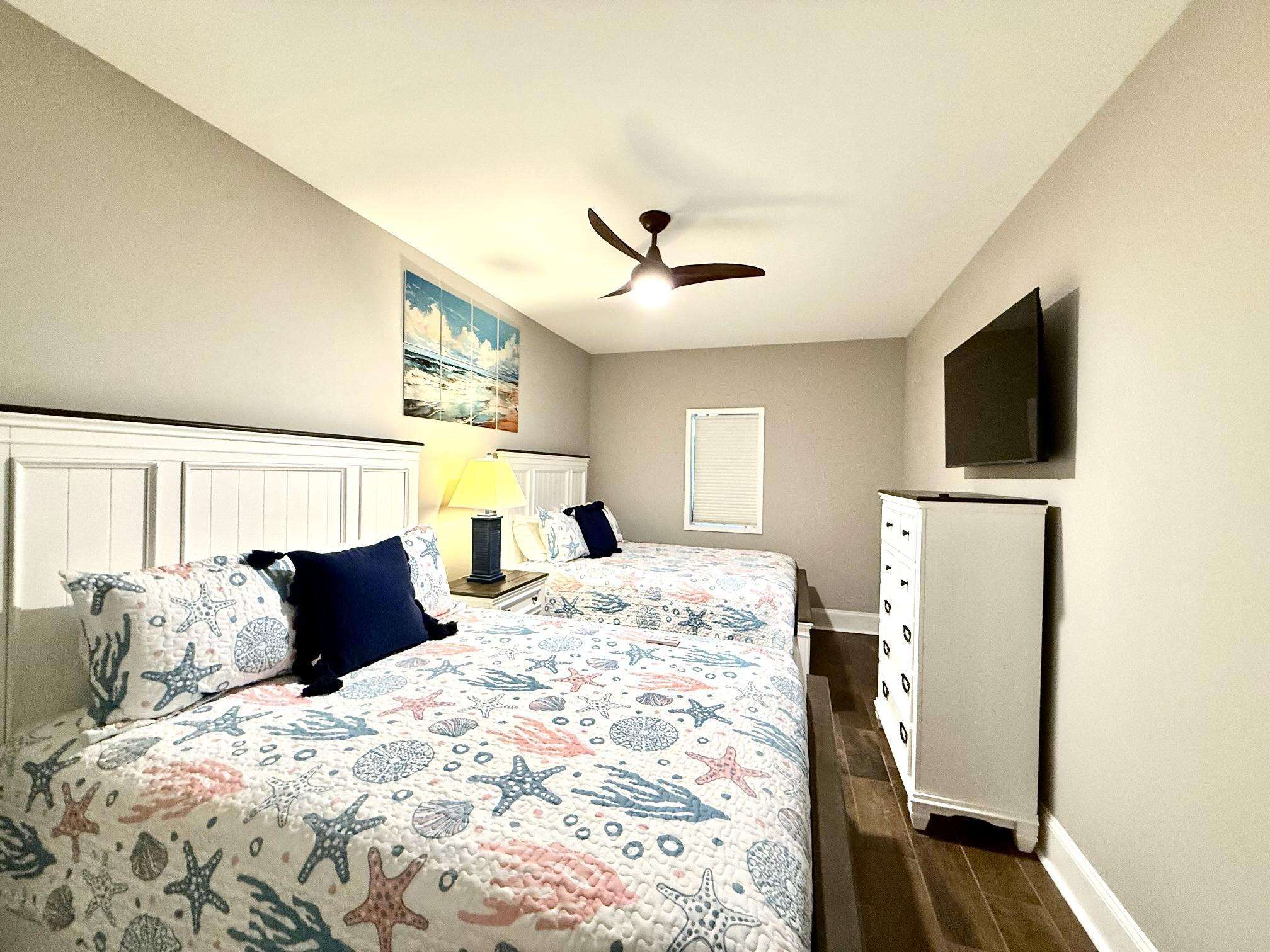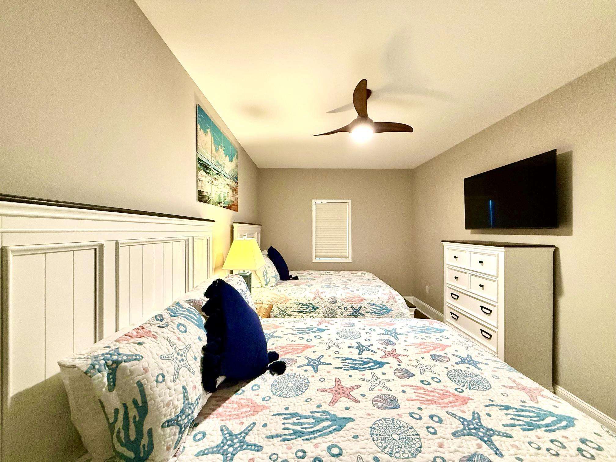 Ceiling fan and large flat‑screen television