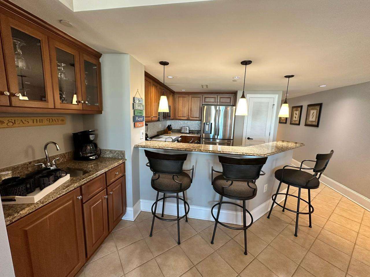 Granite breakfast bar with seating