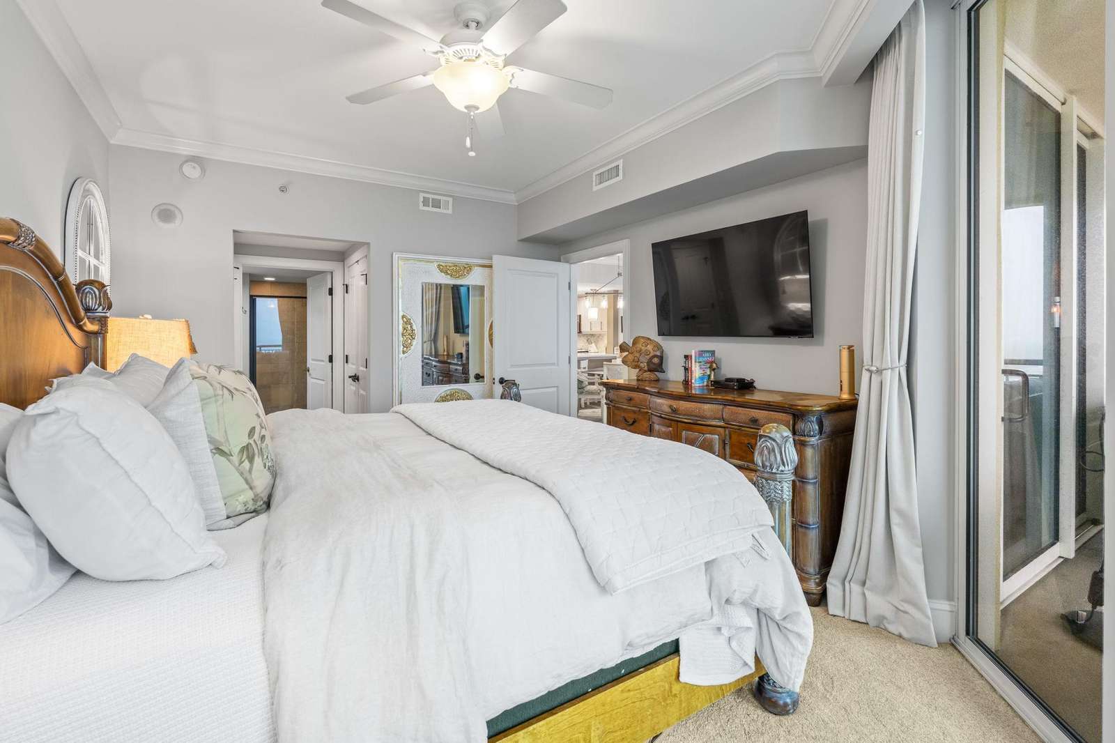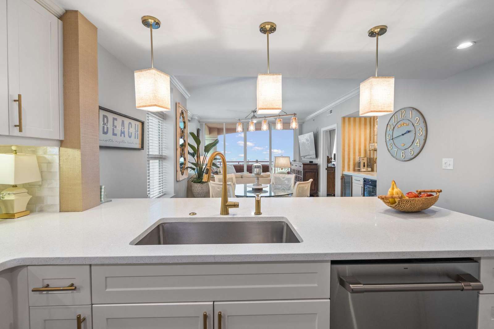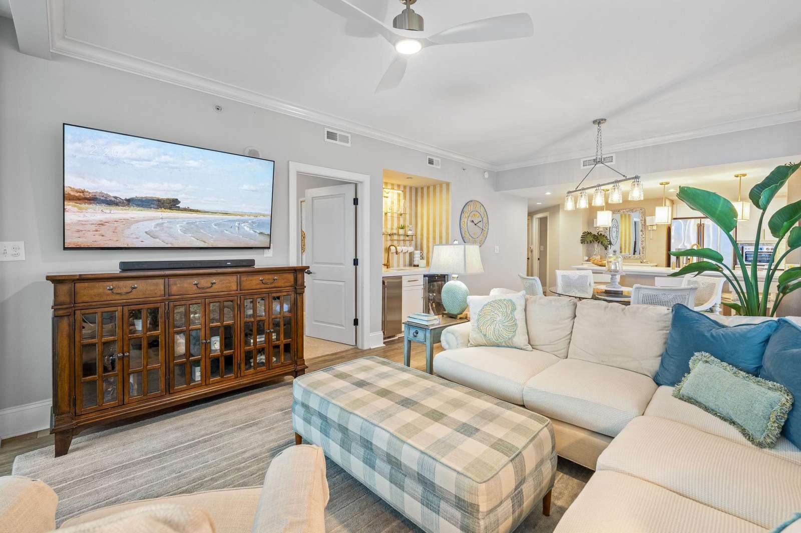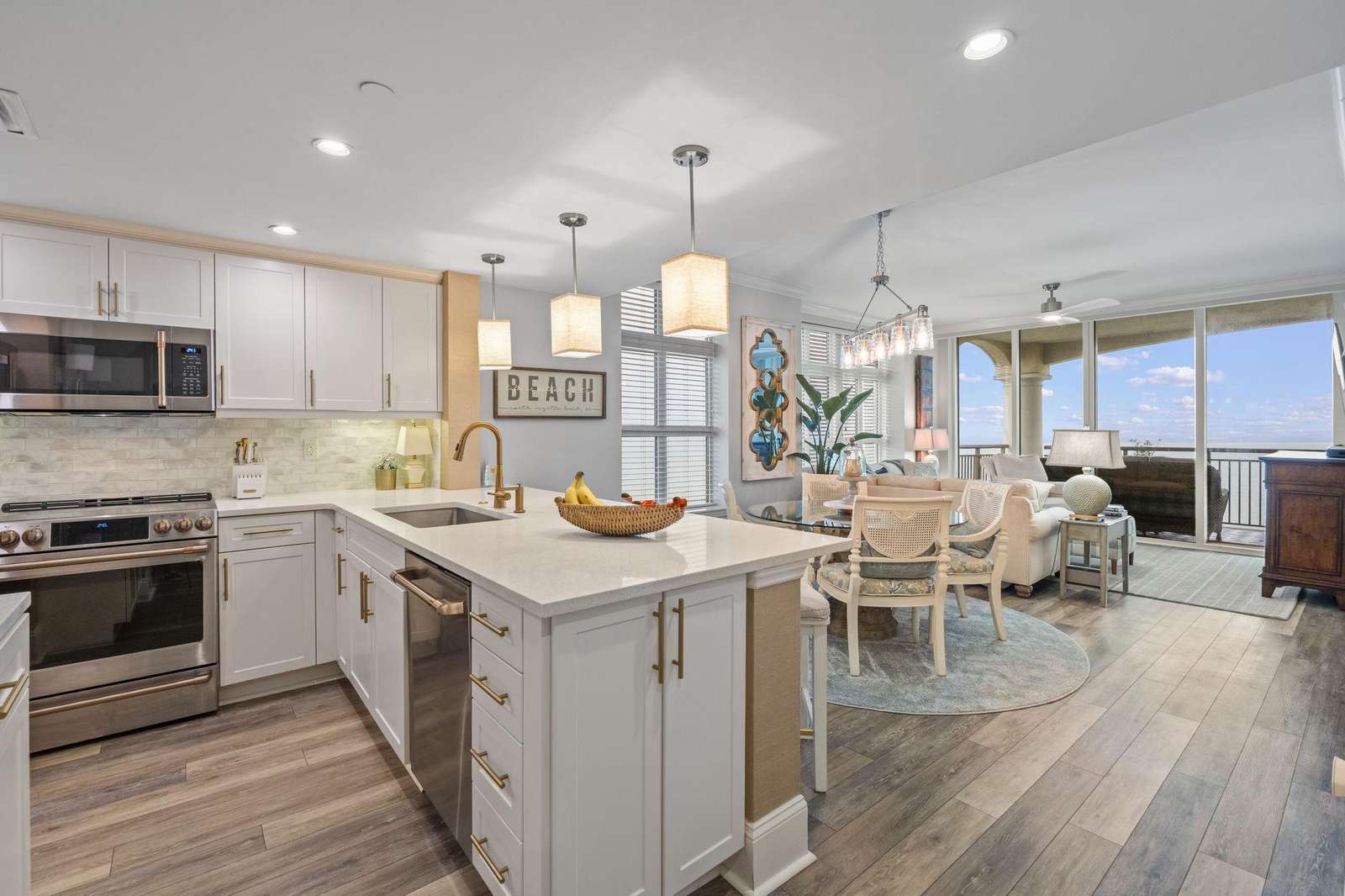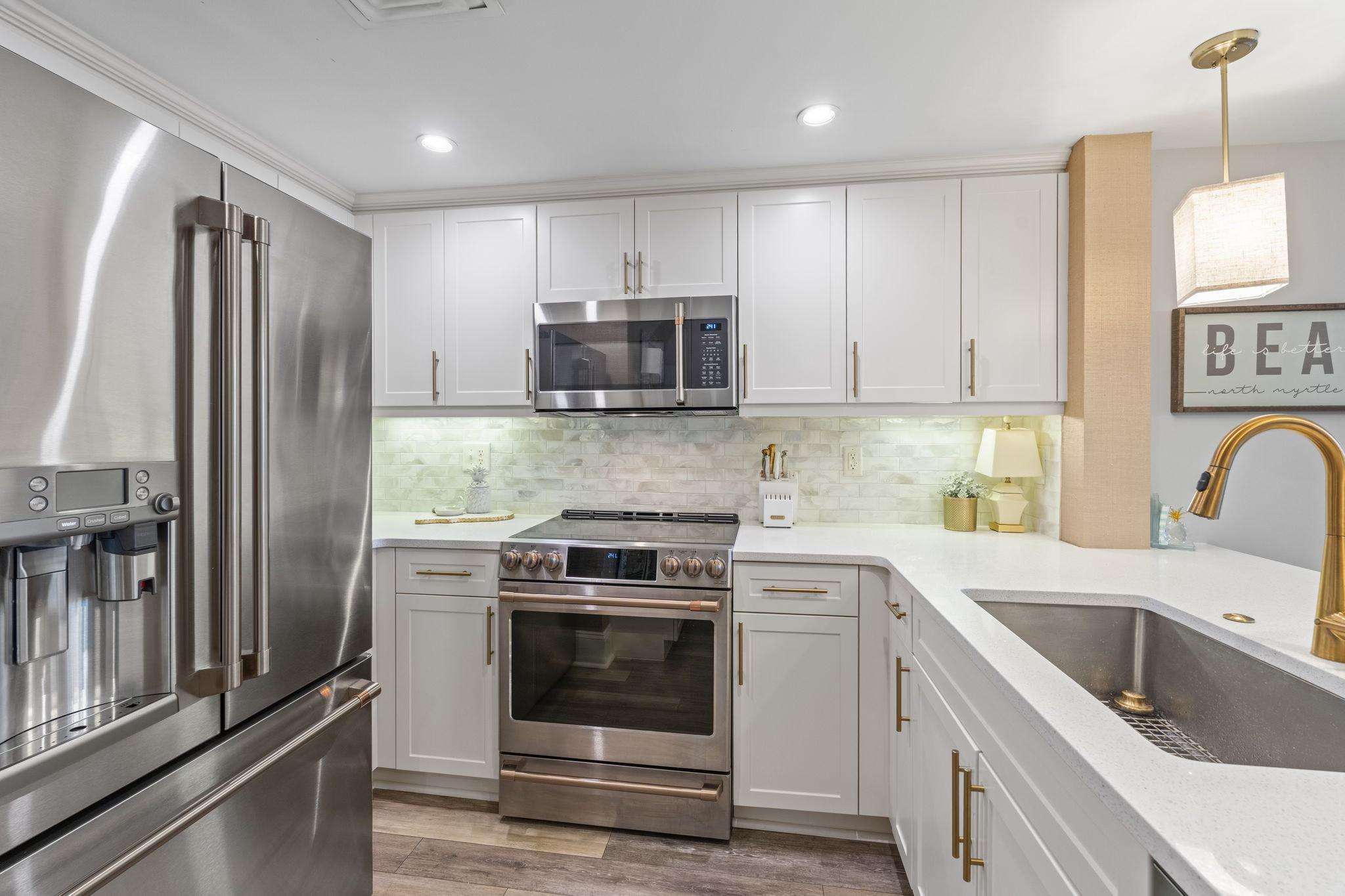 Escape to paradise in this luxury top-floor oceanfront penthouse at Mar Vista Grande, North Myrtle Beach. With 3 spacious bedrooms, 3 full bathrooms, and breathtaking corner views of the Atlantic from every room, this vacation rental is perfect for families, groups, or couples seeking a high-end beach getaway. Enjoy unmatched views and spacious comfort. Wake to ocean sunrises from every bedroom and enjoy expansive balcony sunsets. This beautifully furnished, open floor plan boasts 9-foot ceilings and a newly renovated fully equipped kitchen including quartz countertops, high end finishes, a coffee bar, and stainless-steel appliances. The spacious living room brings the outside in with expansive oversized windows from floor to ceiling. The custom crafted wine bar with ice machine makes for the perfect spot to fix a refreshing drink and relax.