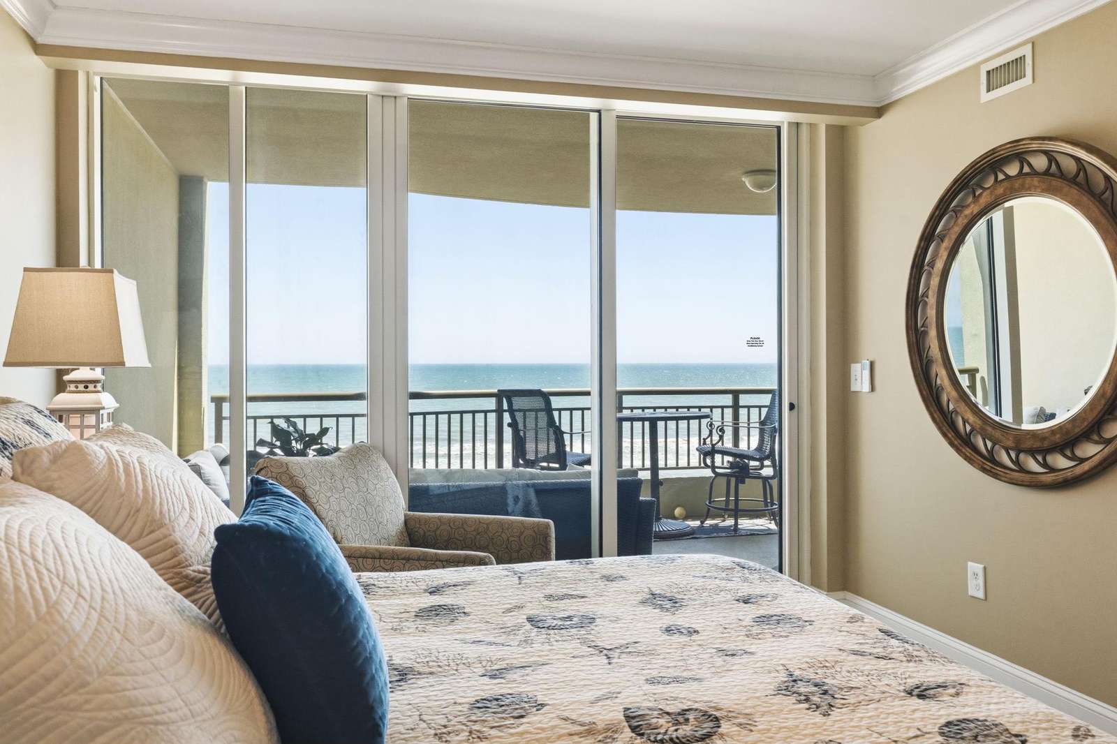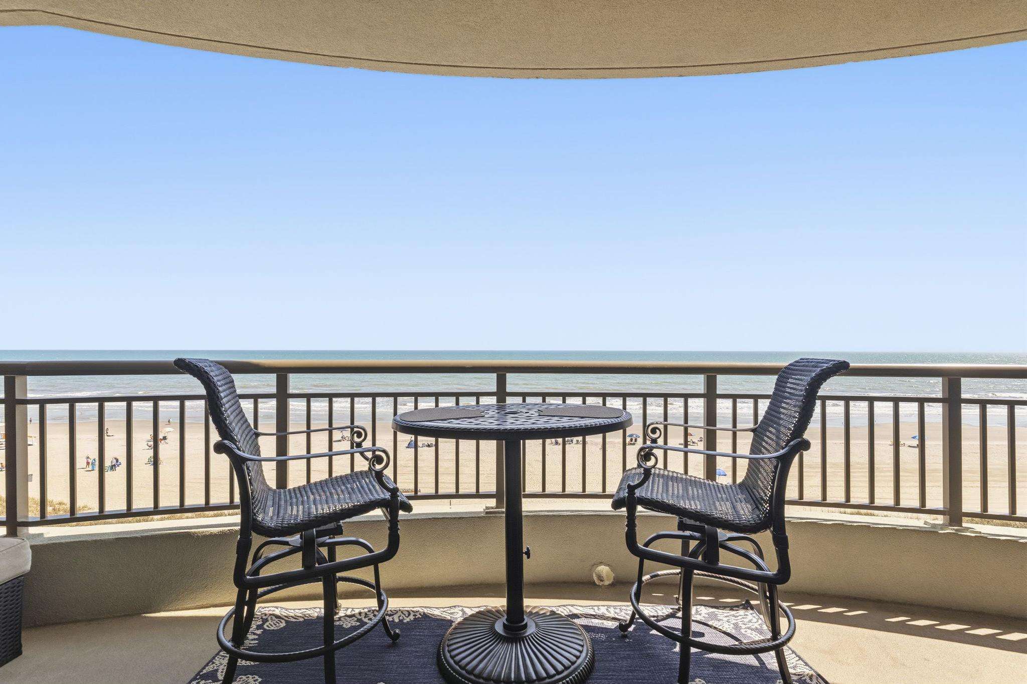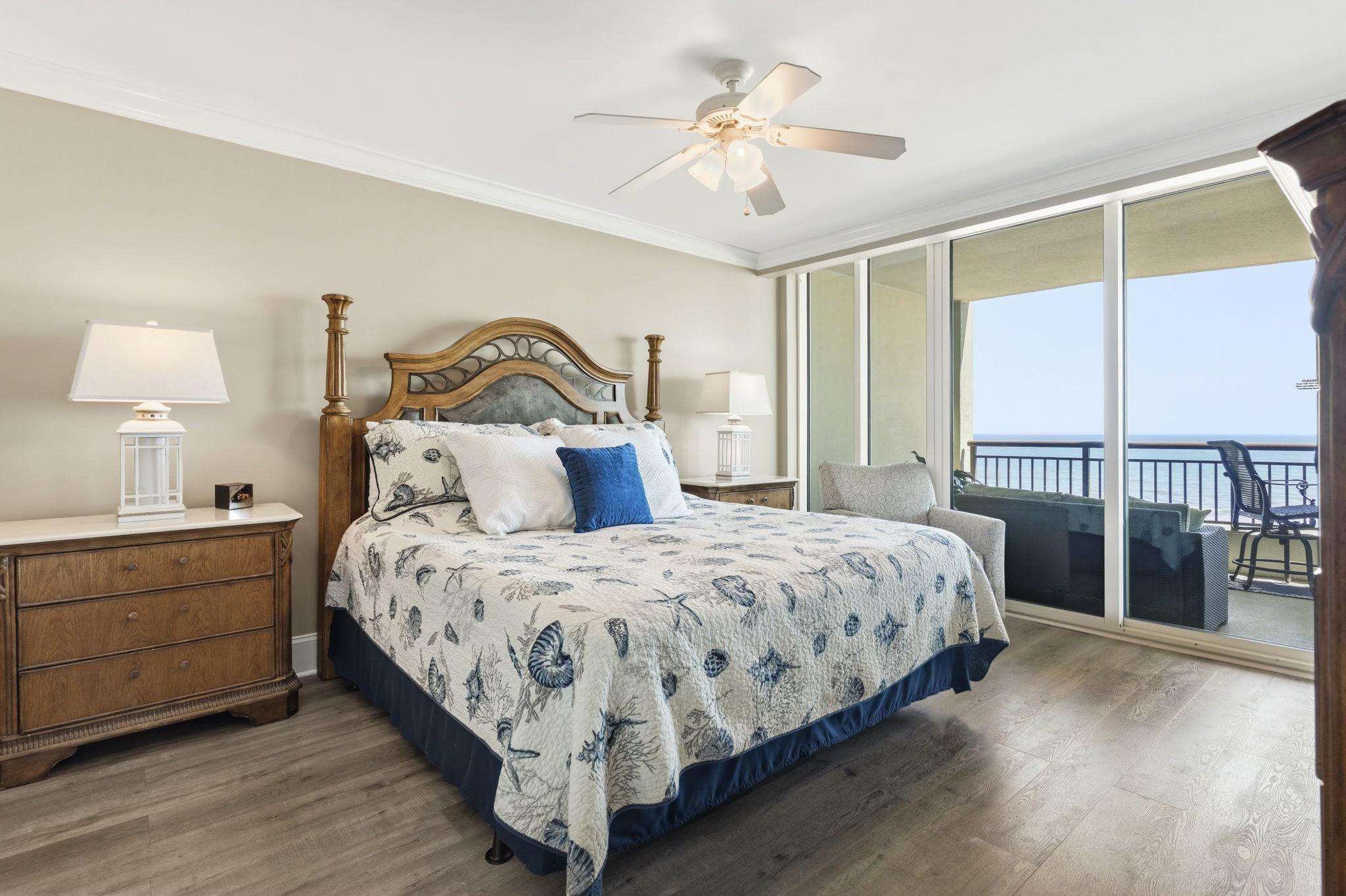Master Suite: The oceanfront master features direct balcony access and an oversized bath with double sinks, granite countertops, and a whirlpool tub.