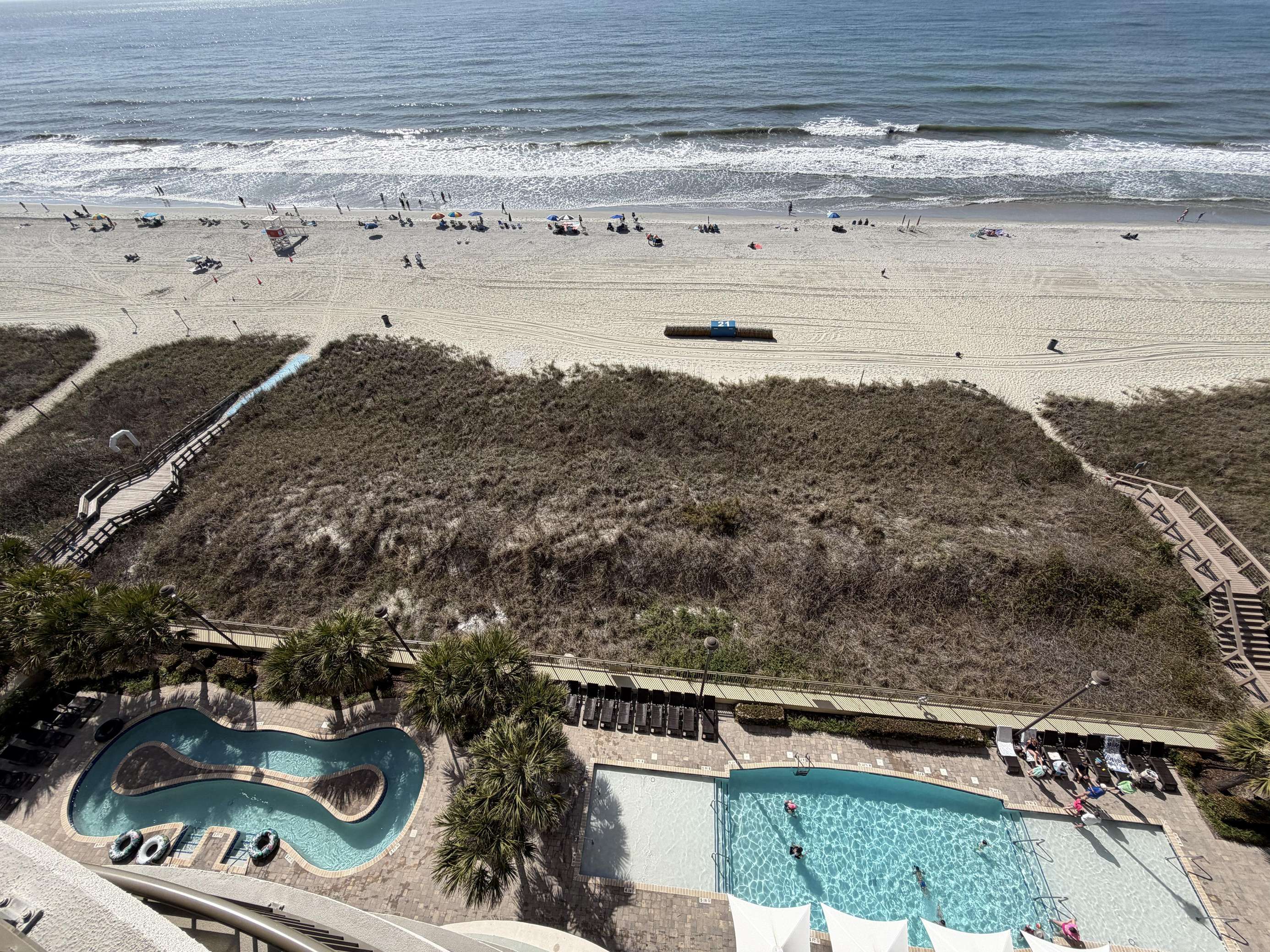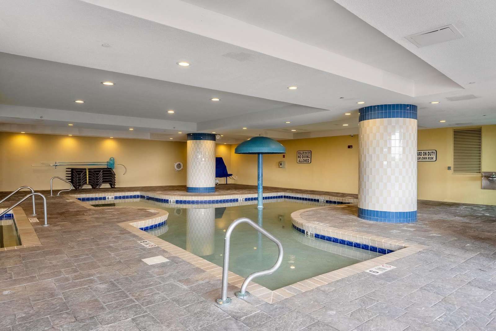 Water & Relaxation: Enjoy an oceanfront lazy river, outdoor pool/hot tub, seasonal tiki bar, and an enclosed, heated indoor pool area.