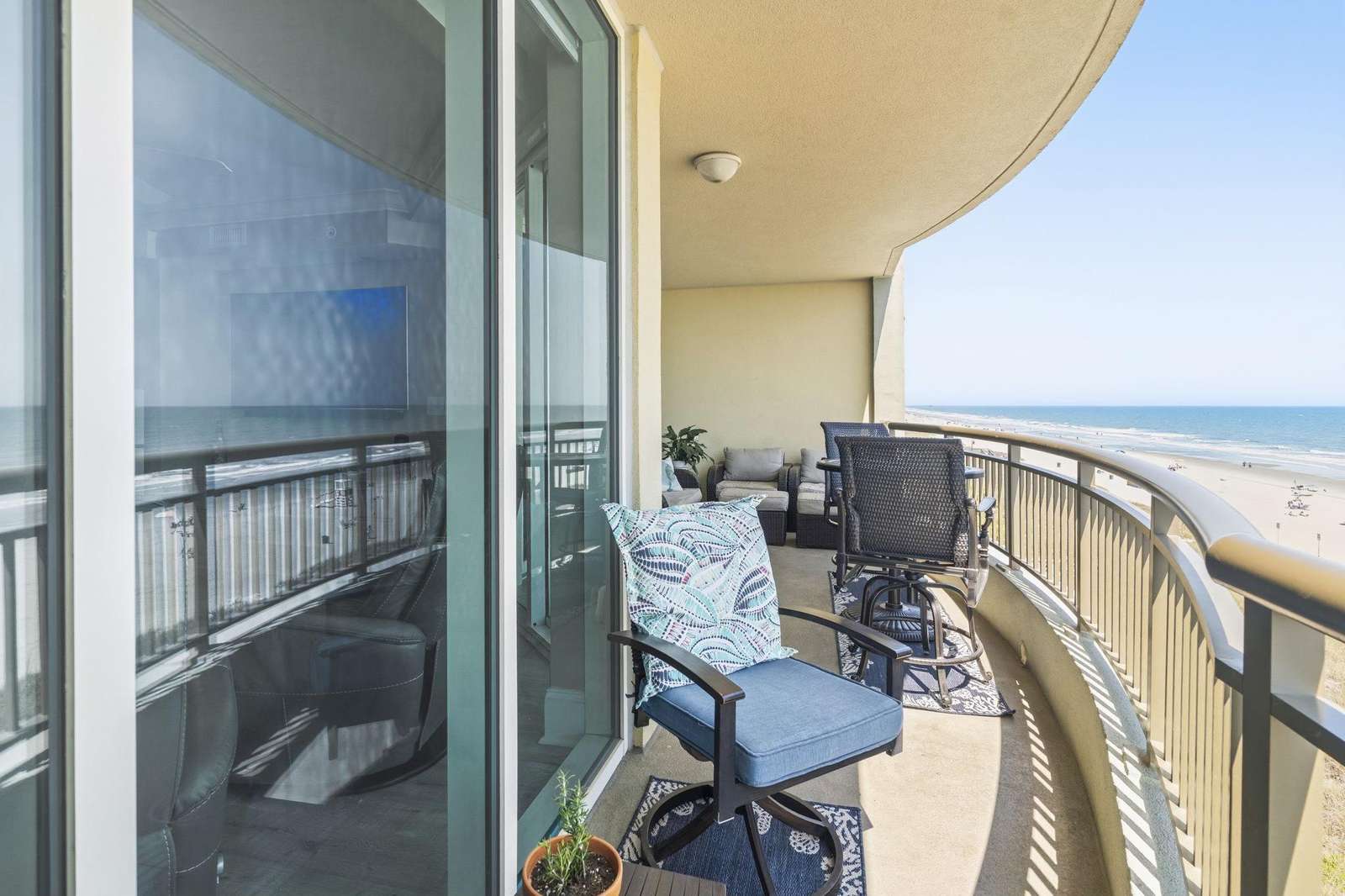 Entertainment & Tech: High-speed internet throughout. The living room features a 65” Samsung curved Smart TV with a Sound Bar and custom automatic shades. All bedrooms include Samsung Smart TVs (50” in Master, 40” in guest rooms).